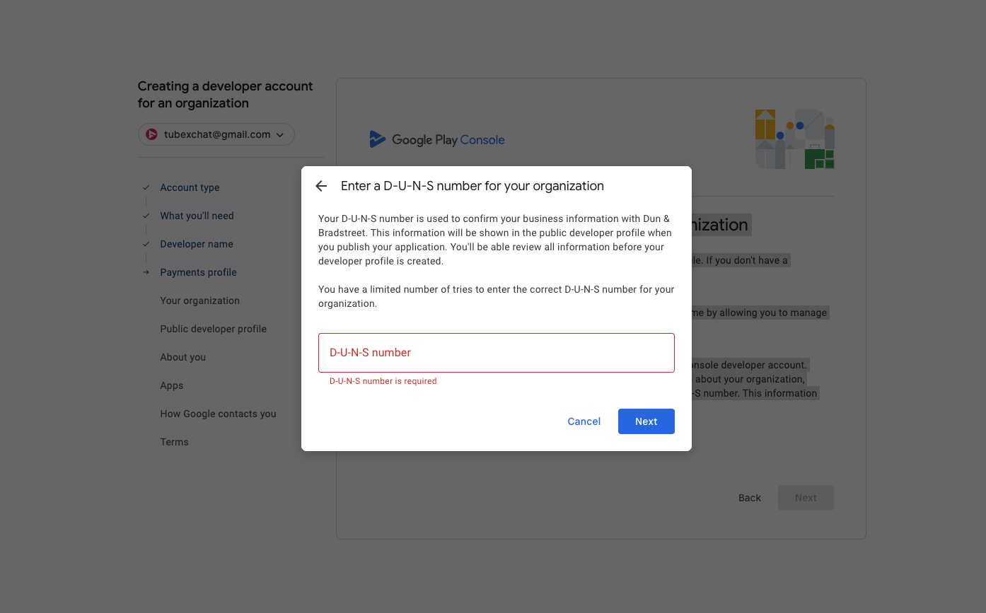 自 2024 年 8 月 31 日起,如果新google开发者账号提供以下服务,则必须注册为组织账号: 金融产品和服务,包括但不限于银行服务、贷款、股票交易、投资基金、加密货币软件钱包和加密货币交易。详细了解金融服务政策。 健康类应用,例如医疗应用和人体研究应用。详细了解健康类应用。 获准使用 VpnService 类的应用。详细了解 VPN 服务政策。 政府应用,包括由政府机构开发或代表政府机构开发的应用。